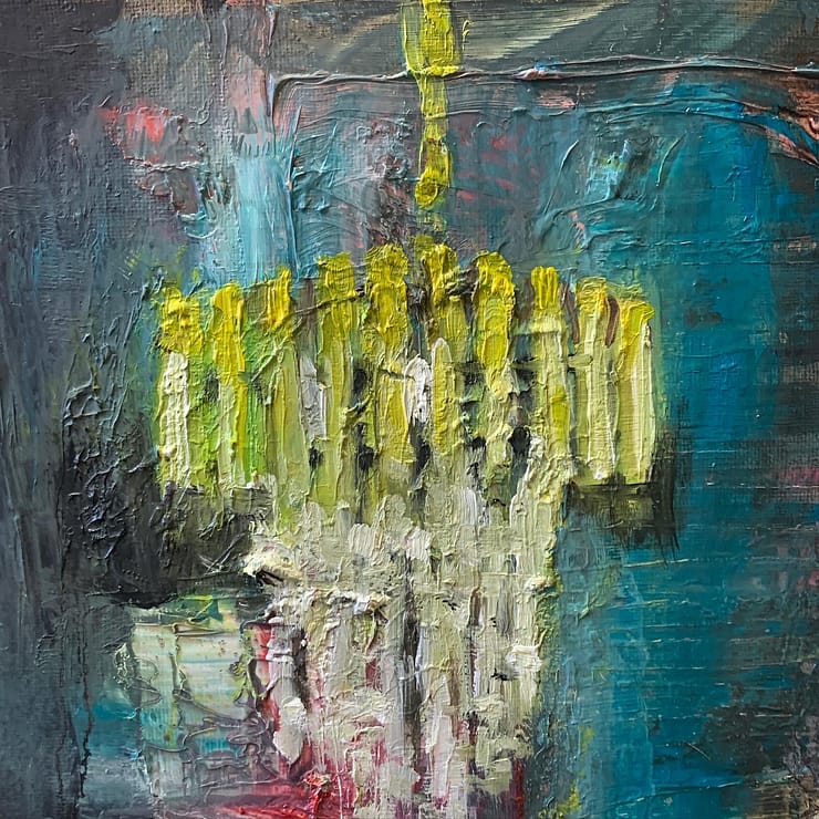Kroonluchters fascineren mij. Net zoals de portretten begin ik vaak heel realistisch te tekenen/schilderen. Gedurende het proces laat ik me steeds meer leiden door mijn gevoel. De kroonluchters is voor mij een doorlopend projekt.